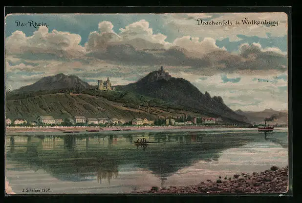 AK Drachenfels, Ortsansicht mit Wolkenburg und Rhein