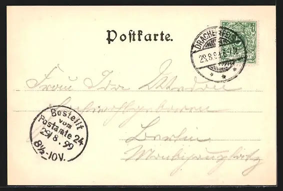 alte Ansichtskarte, gelaufen 1899, Stempelspur, guter Zustand