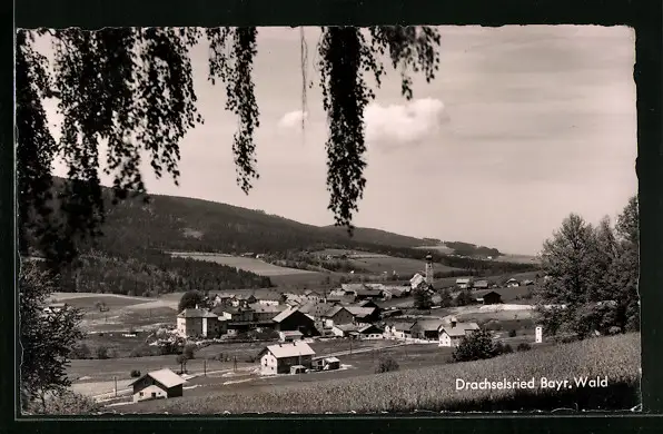 AK Drachselsried /Bayr. Wald, Ortsansicht von einem Berg aus