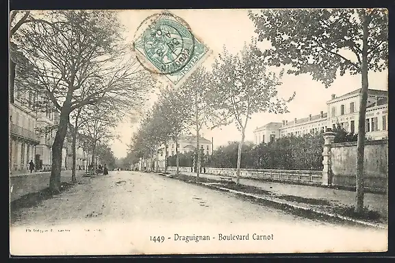 AK Draguignan, Boulevard Carnot avec arbres et bâtiments adjacents