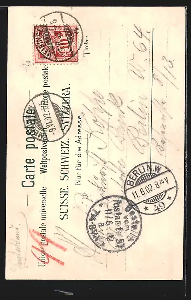 gelaufen 1902, kleiner Einriss re. oben, guter Zustand