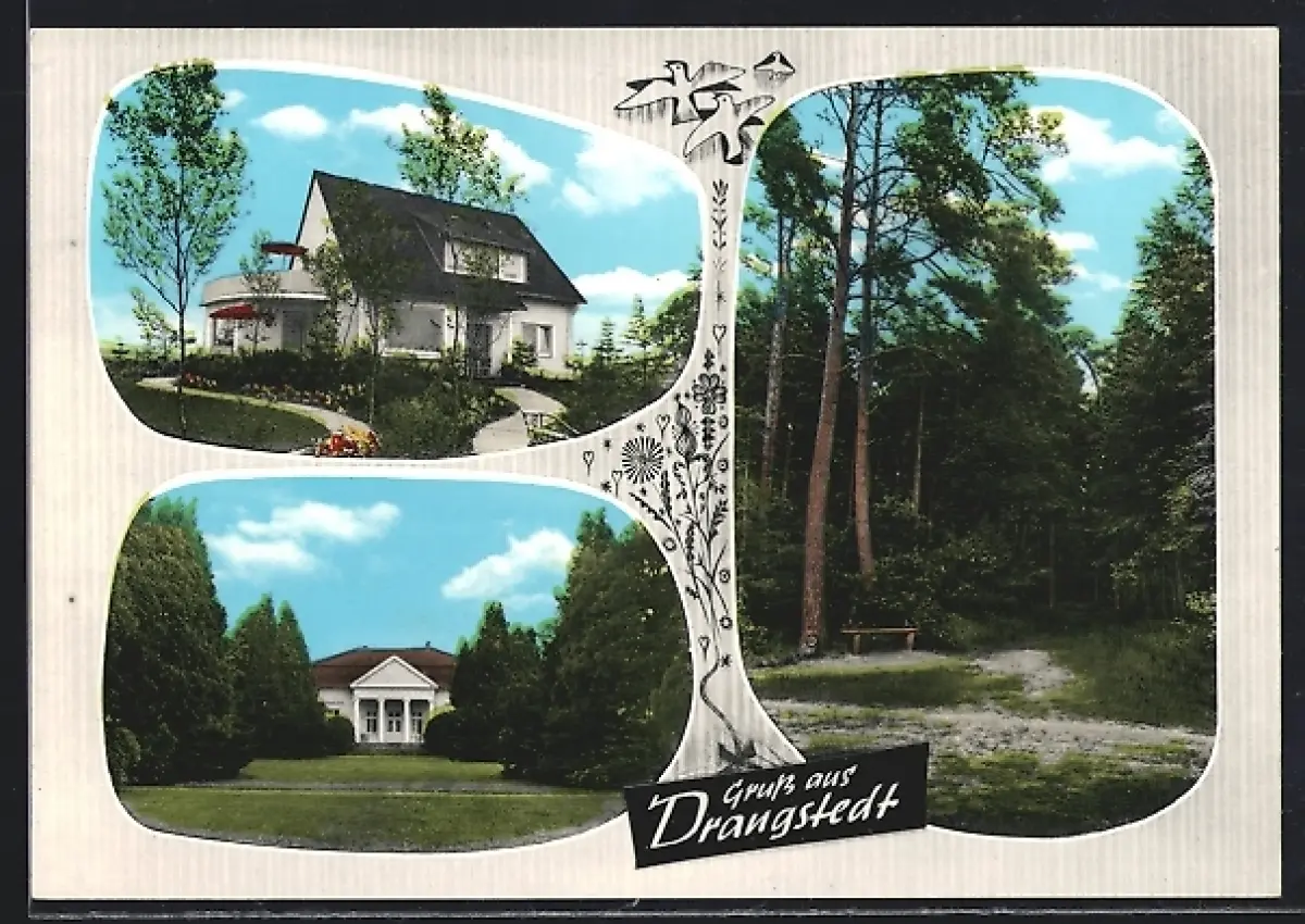 AK Drangstedt über Bremerhaven, Gebäudeansichten, Waldpartie