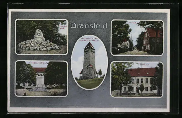 AK Dransfeld, Rathaus und Kriegerdenkmal