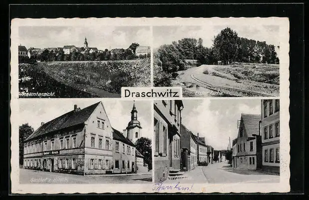 AK Draschwitz, Gesamtansicht, Gasthof zum Hirsch