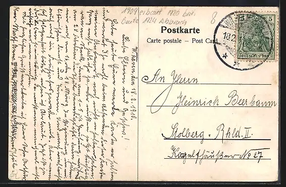 alte Ansichtskarte, gelaufen 1910, guter Zustand