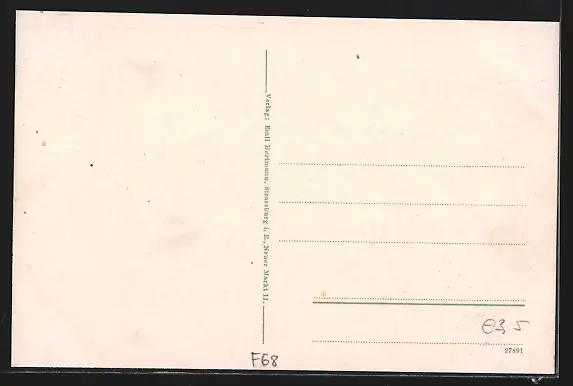 Personenbezogene Daten auf der Rückseite der Karte wurden durch blauen Textmarker unkenntlich gemacht. Die blauen Stellen sind auf die Vorderseite durchgeweicht und wirken sich negativ auf das Postkartenfoto aus