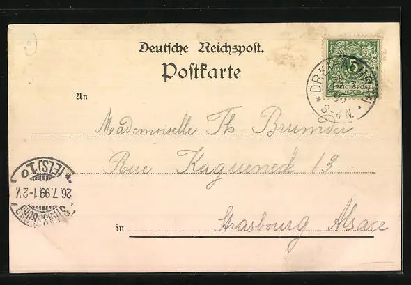 alte Ansichtskarte, gelaufen 1899, guter Zustand