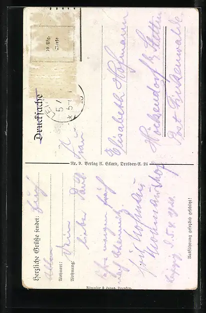 alte Ansichtskarte, gelaufen, Briefmarke entfernt, Bugspur oben mittig, Stempelspur, guter Zustand