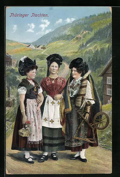 AK Drei Frauen mit Spinnrad in thüringischen Trachten
