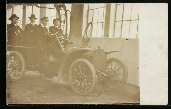 AK Drei Herren mit Chauffeur in einem offenen Auto