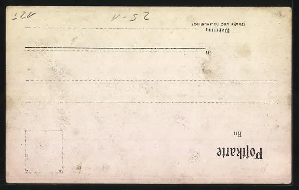Personenbezogene Daten auf der Rückseite der Karte wurden durch blauen Textmarker unkenntlich gemacht. Die blauen Stellen sind auf die Vorderseite durchgeweicht und wirken sich negativ auf das Postkartenfoto aus