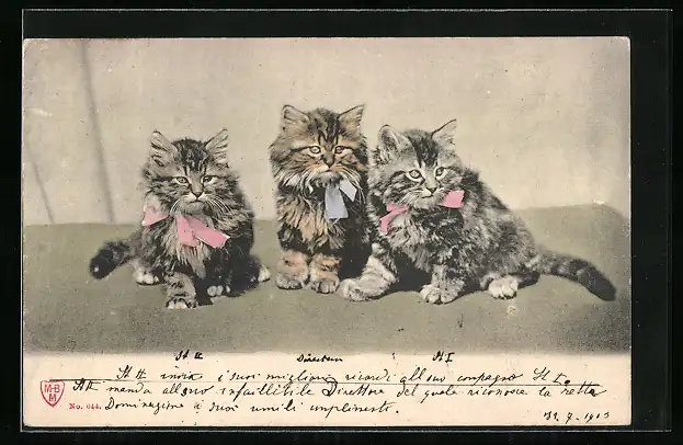 AK Drei Kätzchen mit umgebundenen Schleifen