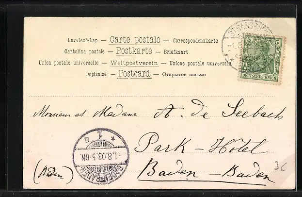 gelaufen 1903, guter Zustand