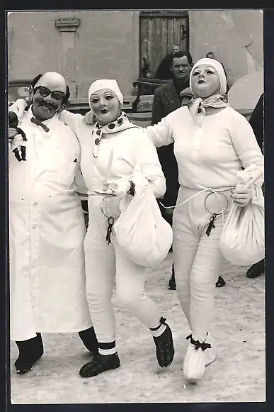 AK Drei Personen im Kostüm beim Fasching