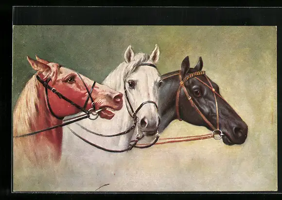 AK Drei Reitpferde mit unterschiedlichem Fell