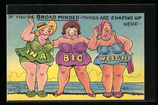 AK Drei übergewichtige Frauen am Strand