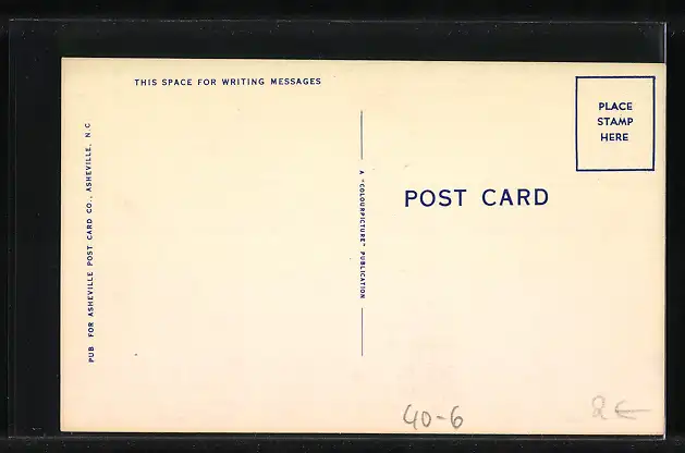 Personenbezogene Daten auf der Rückseite der Karte wurden durch blauen Textmarker unkenntlich gemacht. Die blauen Stellen sind auf die Vorderseite durchgeweicht und wirken sich negativ auf das Postkartenfoto aus