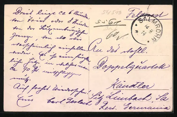 alte Ansichtskarte, gelaufen 1914 als Feldpost, guter Zustand