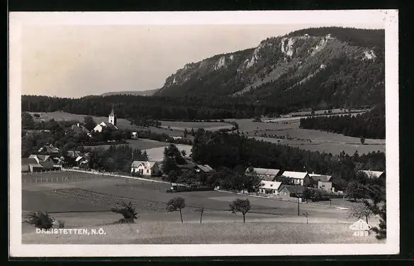 AK Dreistetten, Ortsansicht aus der Vogelschau