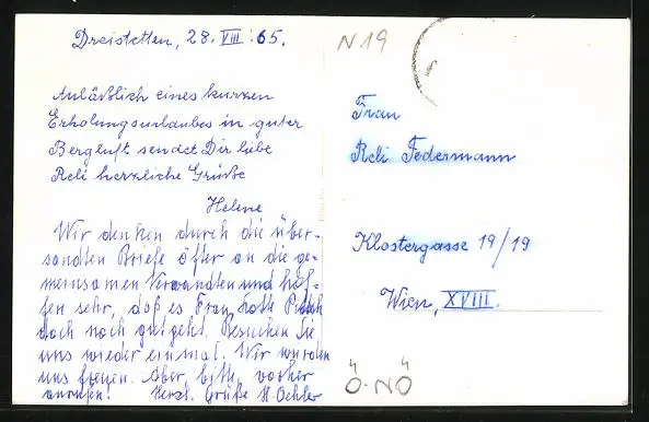 alte Ansichtskarte, gelaufen 1965, Briefmarke entfernt, guter Zustand