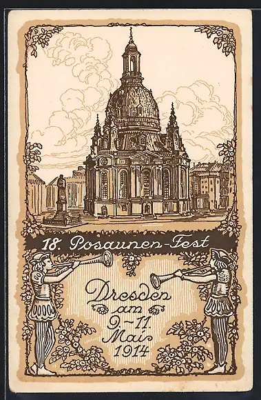 AK Dresden, 18. Posaunen-Fest 1914, Frauenkirche, Trompeter