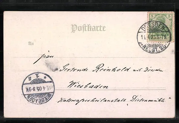 alte Ansichtskarte, gelaufen 1905, Stempelspur, guter Zustand