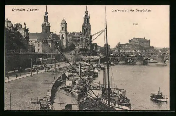 AK Dresden-Altstadt, Landungsplatz der Dampfschiffe gegen Oper