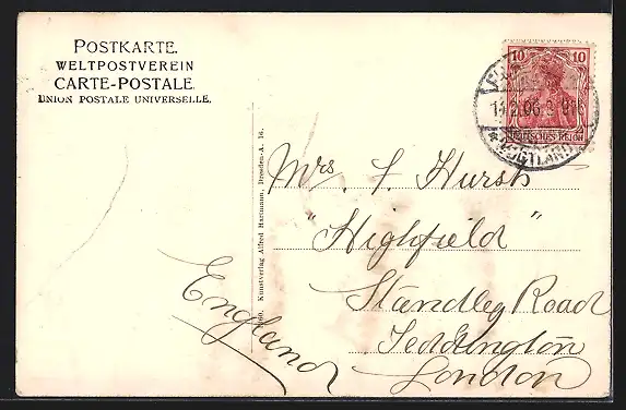 alte Ansichtskarte, gelaufen 1906, Bugspur re. mittig, guter Zustand