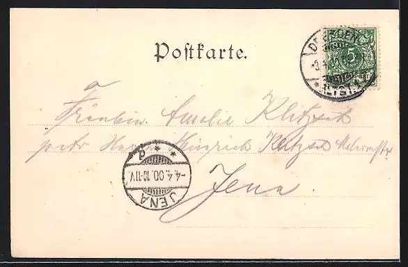 alte Ansichtskarte, gelaufen 1900, Eckknick oben li., guter Zustand