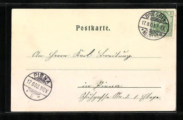 alte Ansichtskarte, gelaufen 1903, Albumspuren, Stempelspur, guter Zustand