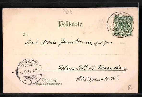 alte Ansichtskarte, gelaufen 1899, Albumspuren, sonst guter Zustand