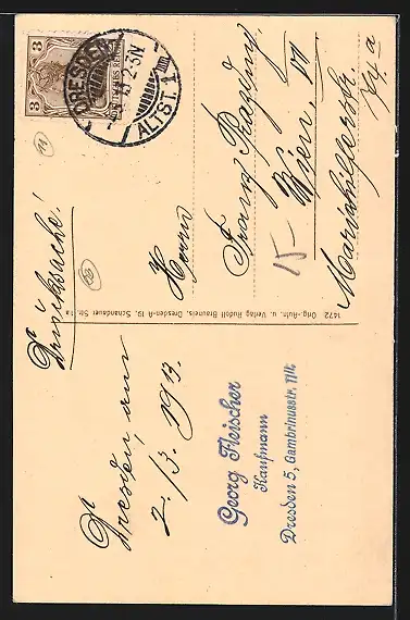 alte Ansichtskarte, gelaufen 1913, Stempelspur, guter Zustand