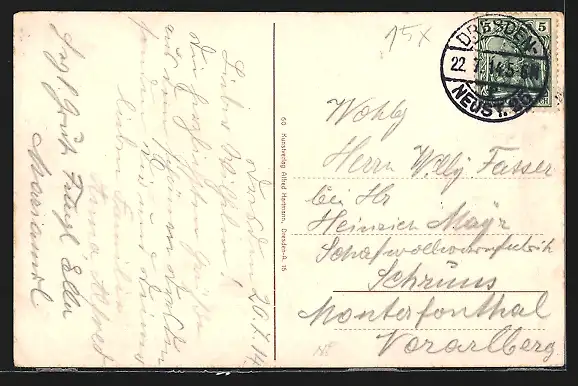 alte Ansichtskarte, gelaufen 1914, Eckknick unten re., guter Zustand