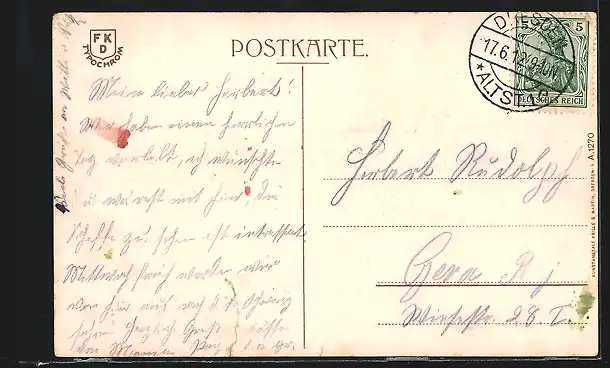 alte Ansichtskarte, gelaufen 1912, guter Zustand
