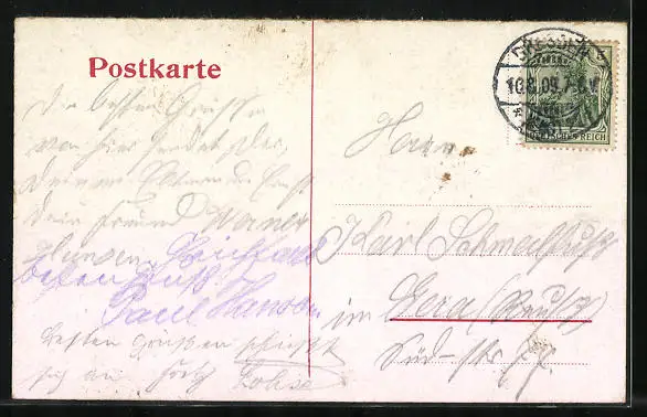 alte Ansichtskarte, gelaufen 1909, guter Zustand