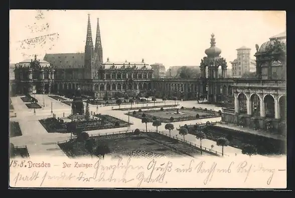 AK Dresden, Der Zwinger mit. Blick auf die Kirche