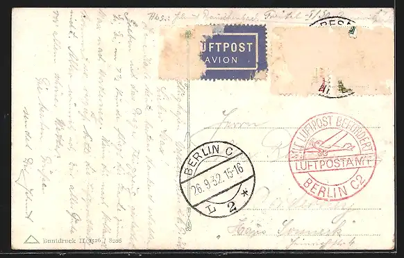 alte Ansichtskarte, gelaufen 1932, Bugspuren oben, Briefmarke entfernt, rückseitig Oberflächenschaden, guter Zustand