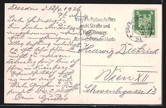 alte Ansichtskarte, gelaufen 1926, Eckknick re. unten, guter Zustand