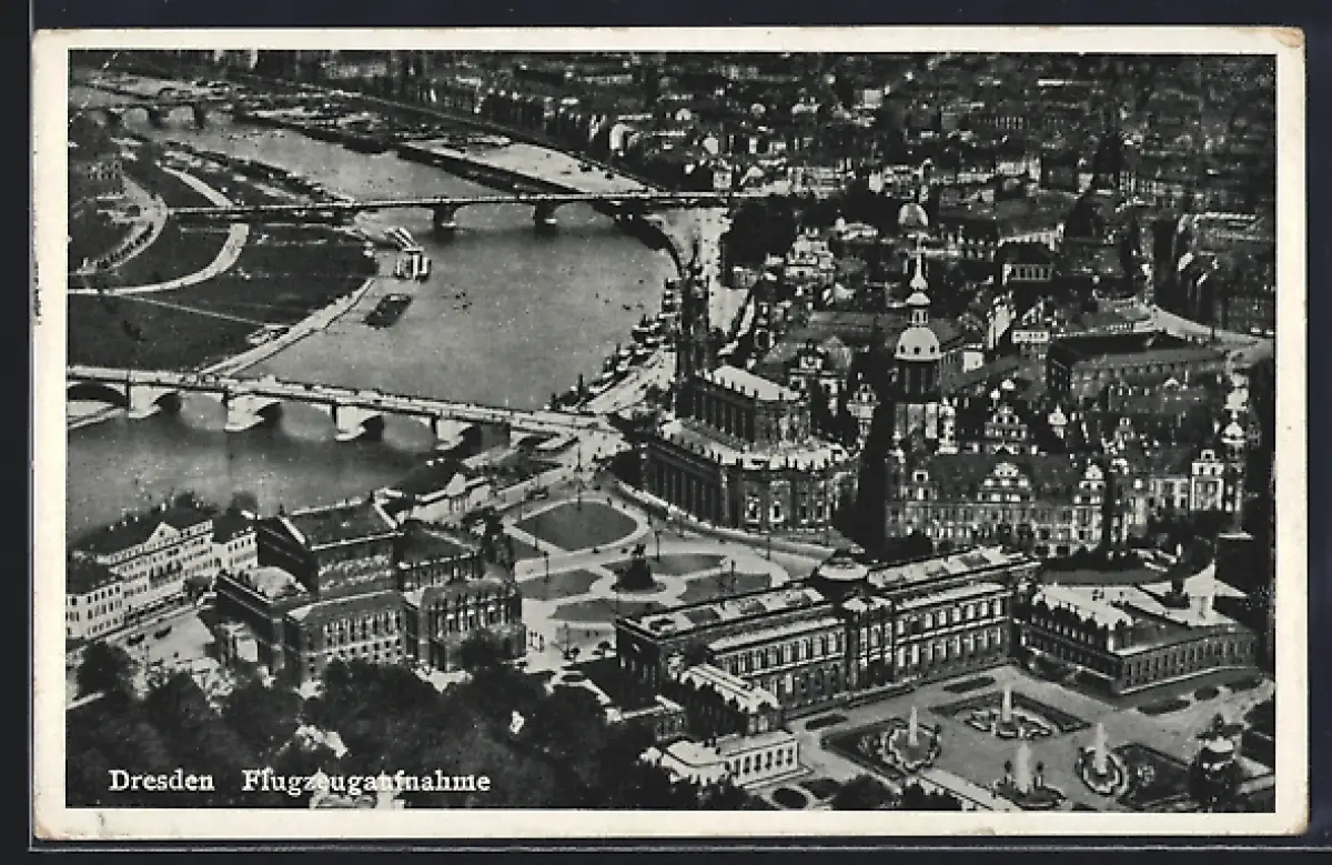AK Dresden, Fliegeraufnahme der Satdt mit den Elbbrücken