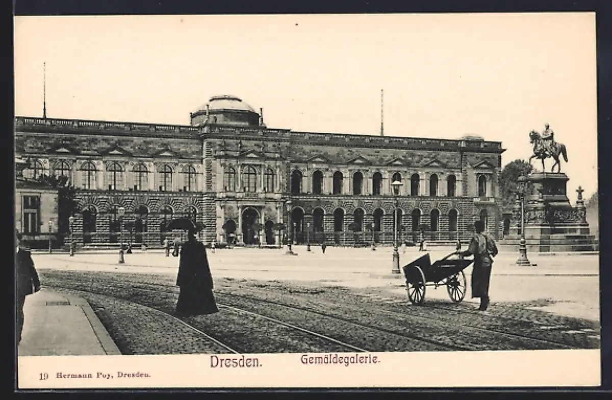 AK Dresden, Gemäldegalerie mit Reiterstandbild