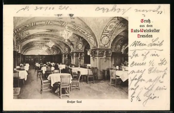 AK Dresden, Innenansicht des Ratskellers, Grosser Saal
