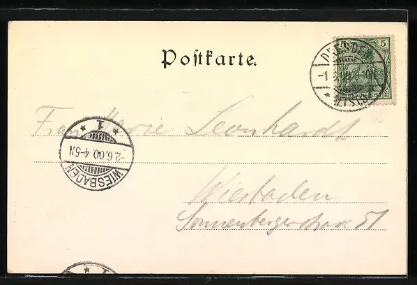 alte Ansichtskarte, gelaufen 1900, guter Zustand