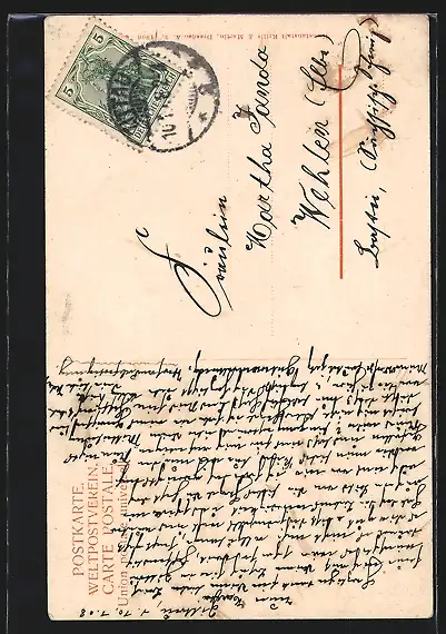 alte Ansichtskarte, gelaufen 1908, guter Zustand