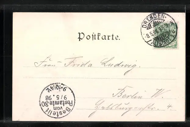 alte Ansichtskarte, gelaufen 1898, Albumspuren, Stempelspur, Eckknick li. oben, guter Zustand