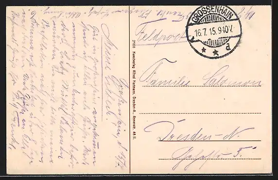 alte Ansichtskarte, gelaufen 1915, Stempelspur, guter Zustand