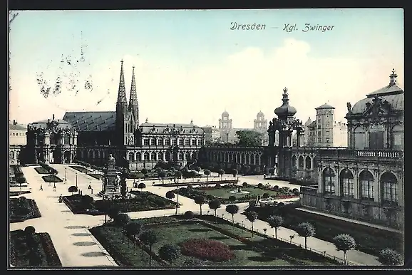 AK Dresden, Kgl. Zwinger mit Denkmal