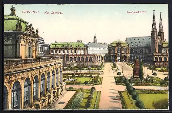 AK Dresden, Kgl Zwinger und Sophienkirche aus der Vogelschau