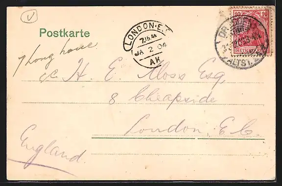 alte Ansichtskarte, gelaufen 1904, guter Zustand