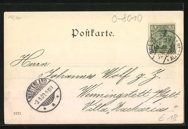 alte Ansichtskarte, gelaufen 1900, Stempelspur, guter Zustand