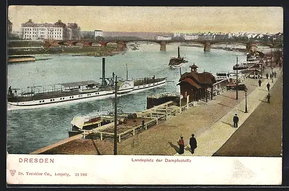 AK Dresden, Landeplatz der Dampfschiffe mit Dampfer